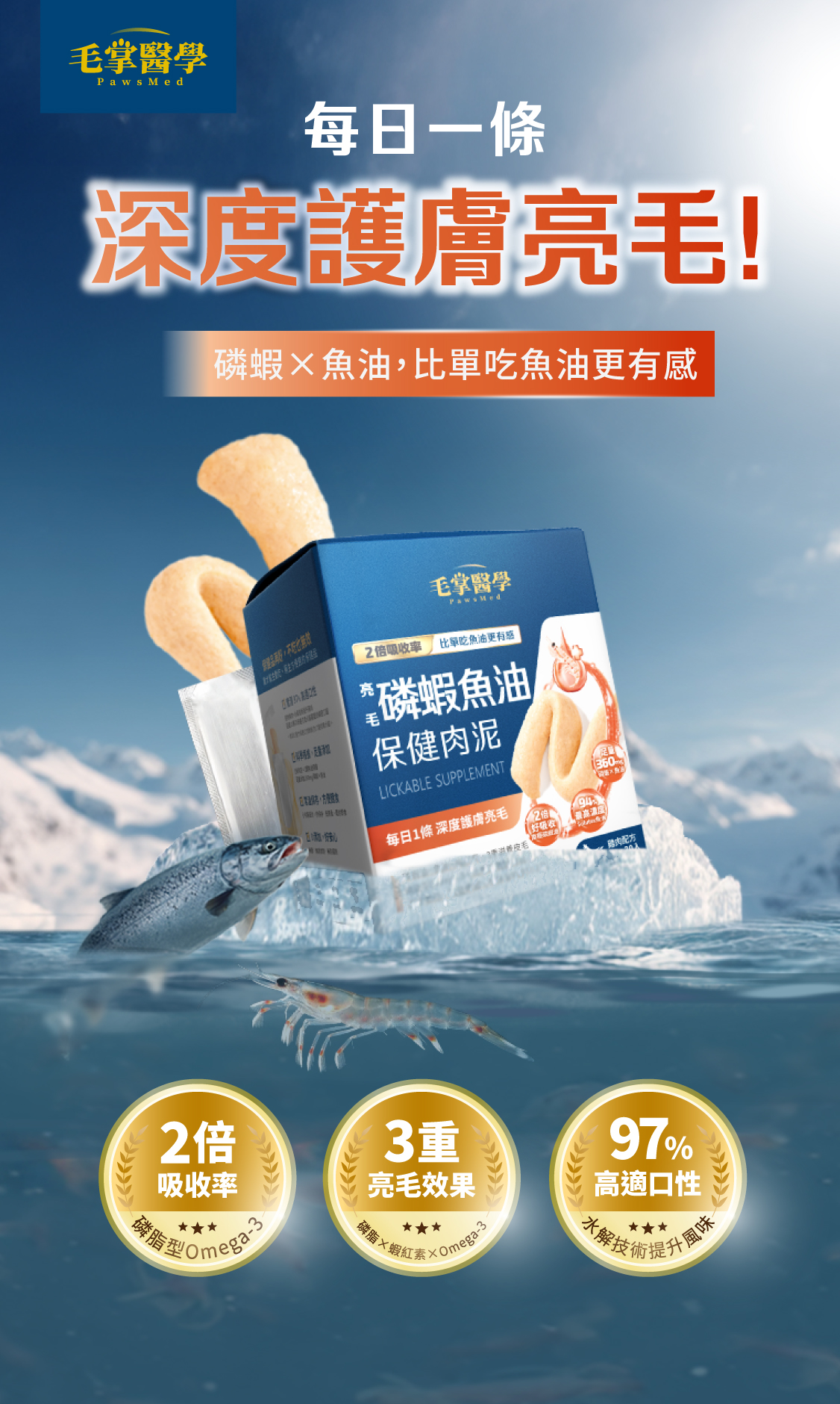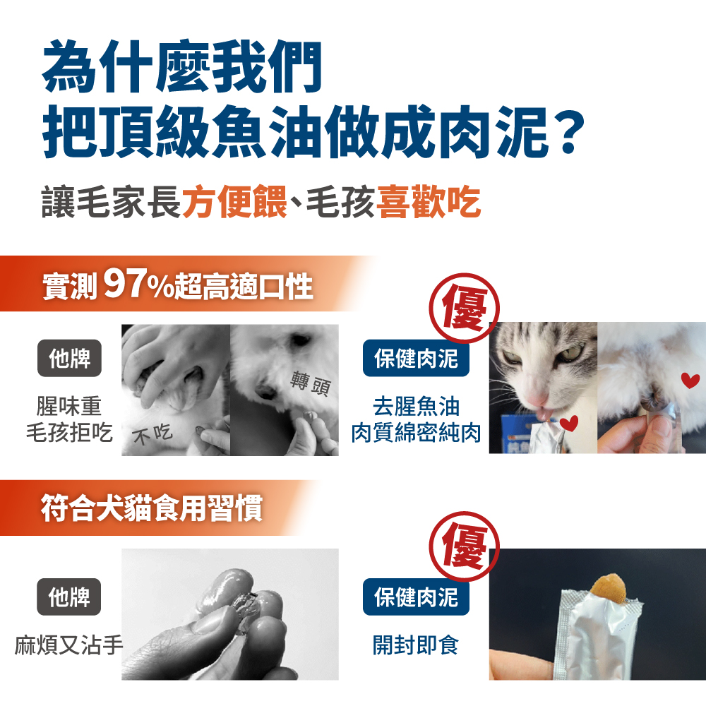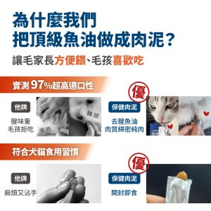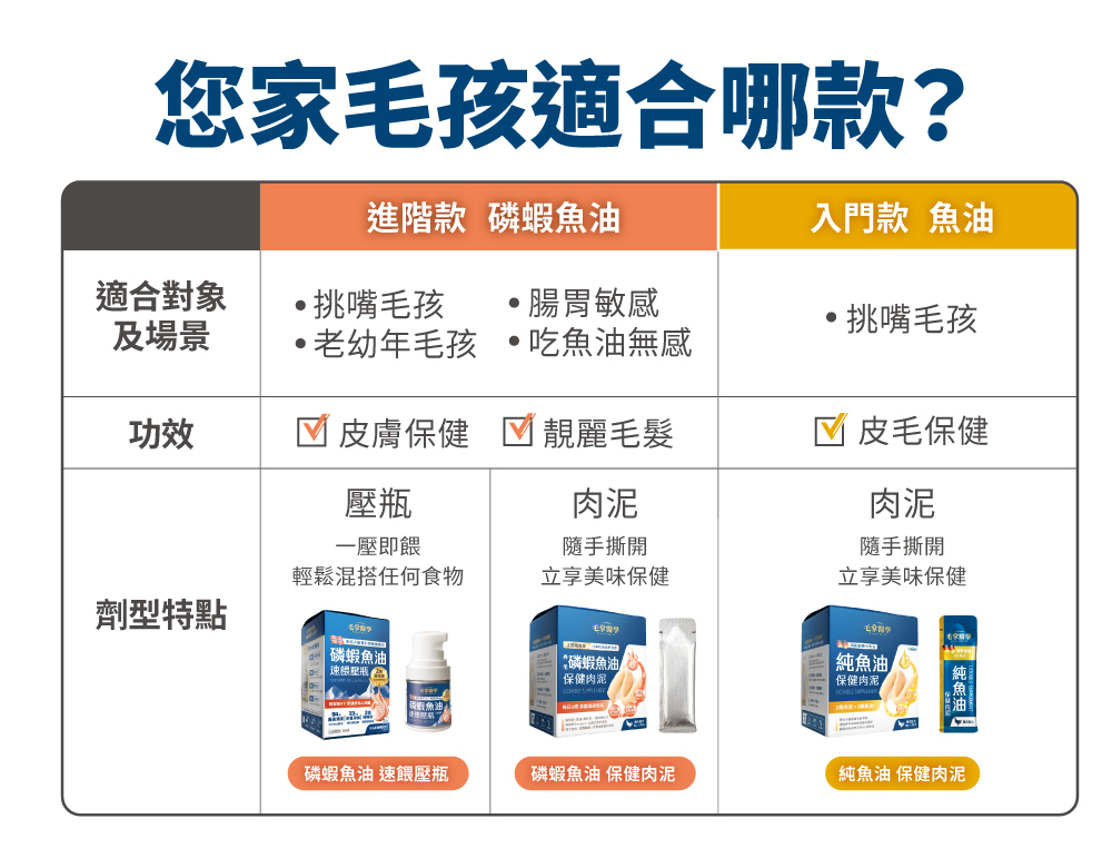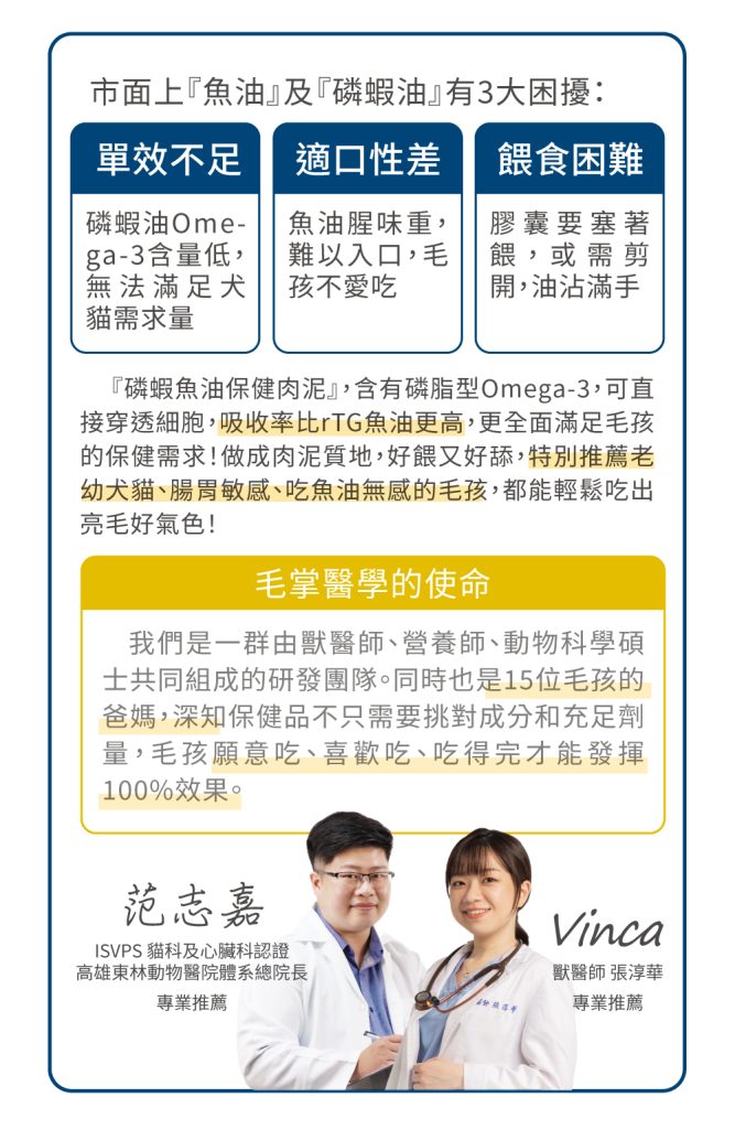 ☑ 1條肉泥=360mg磷蝦魚油 ☑ 比單吃魚油更有感亮毛 ☑ 含磷脂型Omega-3,比魚油好吸收 ☑ 含膽鹼及蝦紅素,助全保養 ☑ 無添加物,適口好不怕上癮,放心每天吃